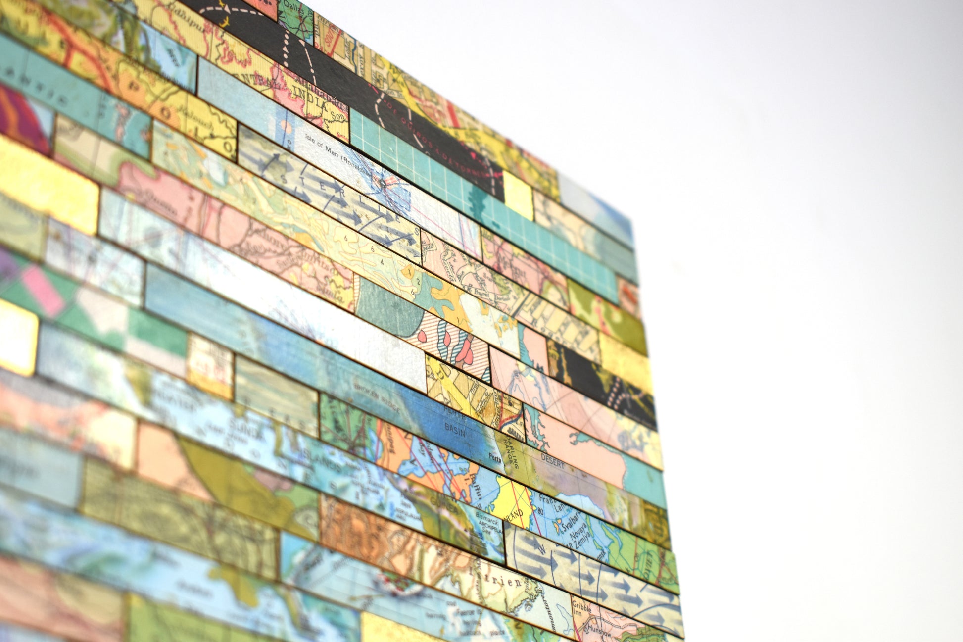 Every strip holds traces of journeys, shifts in power, and reimagined borders — some sourced from maps over 150 years old. This combination of past and present invites reflection on how maps record not only topography but stories of human movement, belonging and control.